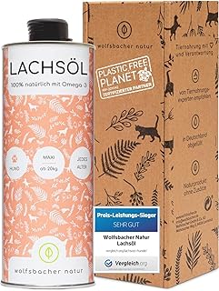Lachsöl ist etwas milder im Geschmack und wird von vielen Hunden gut akzeptiert. Kaltgepresstes Lachsöl behält die Vitamine am besten.