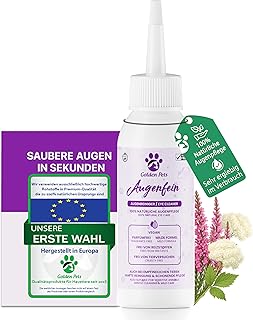 Augenreiniger: Ein Augenreiniger für Hunde dient der äußeren Reinigung. Er wird mit Wattepads oder speziellen Augenpads aufgetragen, um Verkrustungen, Schmutz und Sekrete rund um die Augen zu entfernen. Er kommt nicht direkt ins Auge und wird für die tägliche Pflege verwendet.