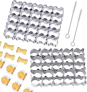 Die typischen Formen wie Knochen, Pfoten oder Hundemotive gibt es oft im Set in verschiedenen Größen – perfekt für kleine Trainingsbelohnungen und größere Kausnacks. Ein Vorteil: Sie sind oft etwas robuster und für härtere Teige besser geeignet als filigrane Weihnachtsmotive.