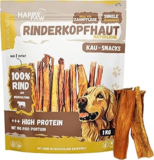 Getrocknete Rinderkopfhaut ist eine weitere proteinreiche Alternative mit hohem Knorpelanteil, was gut für die Gelenkgesundheit sein kann.