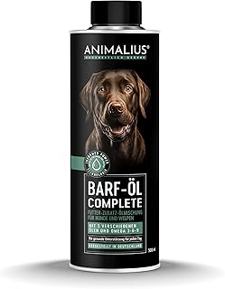 Eine ausgewogene BARF-Ernährung benötigt gezielte Nahrungsergänzungen, um Nährstoffdefizite zu vermeiden. Essentiell ist Lachsöl oder Fischöl für Omega-3-Fettsäuren, die entzündungshemmend wirken und Fell sowie Haut unterstützen.